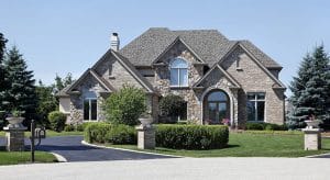 Brick and stone home with cedar roof